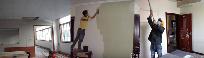 4、原來墻面有的膩?zhàn)雍苗P除,或者刷一遍膠水封固;