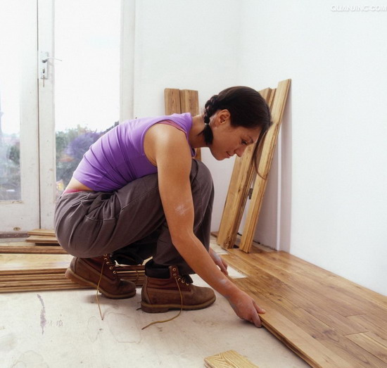 4、試鋪地板,先試鋪三排不涂膠排與彈好的基準(zhǔn)線對(duì)齊,板與板之間的接頭至少要錯(cuò)開20厘米,每排的后一塊地板截板不得小于30厘米。鋪裝與室內(nèi)采光方向平行或順著房間延長(zhǎng)線方向鋪板。