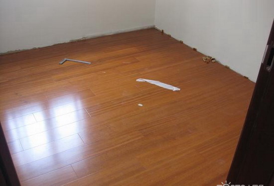 7、清場(chǎng):將地板表面和拼縫處"多余的膠痕和污物"清理干凈。