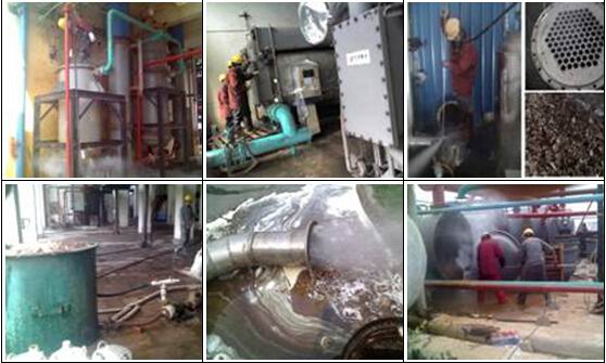 化工行業(yè)清洗: 換熱器清洗、冷凝器清洗、加熱器清洗、再沸器清洗、反應(yīng)器(塔、釜)清洗、循環(huán)冷卻水系統(tǒng)清洗、鍋爐清洗、吸收器(塔)清洗、合成塔清洗、工藝管道清洗、貯罐清洗、空壓機(jī)清洗、油系統(tǒng)清洗等。
